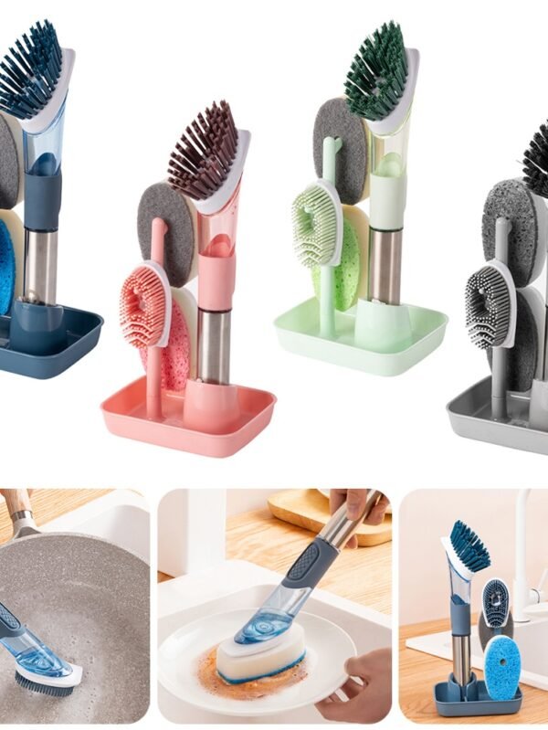 Multifunctional Dish Brush Household Kitchen Oily Sponge Long Handle Cleaning Brush
