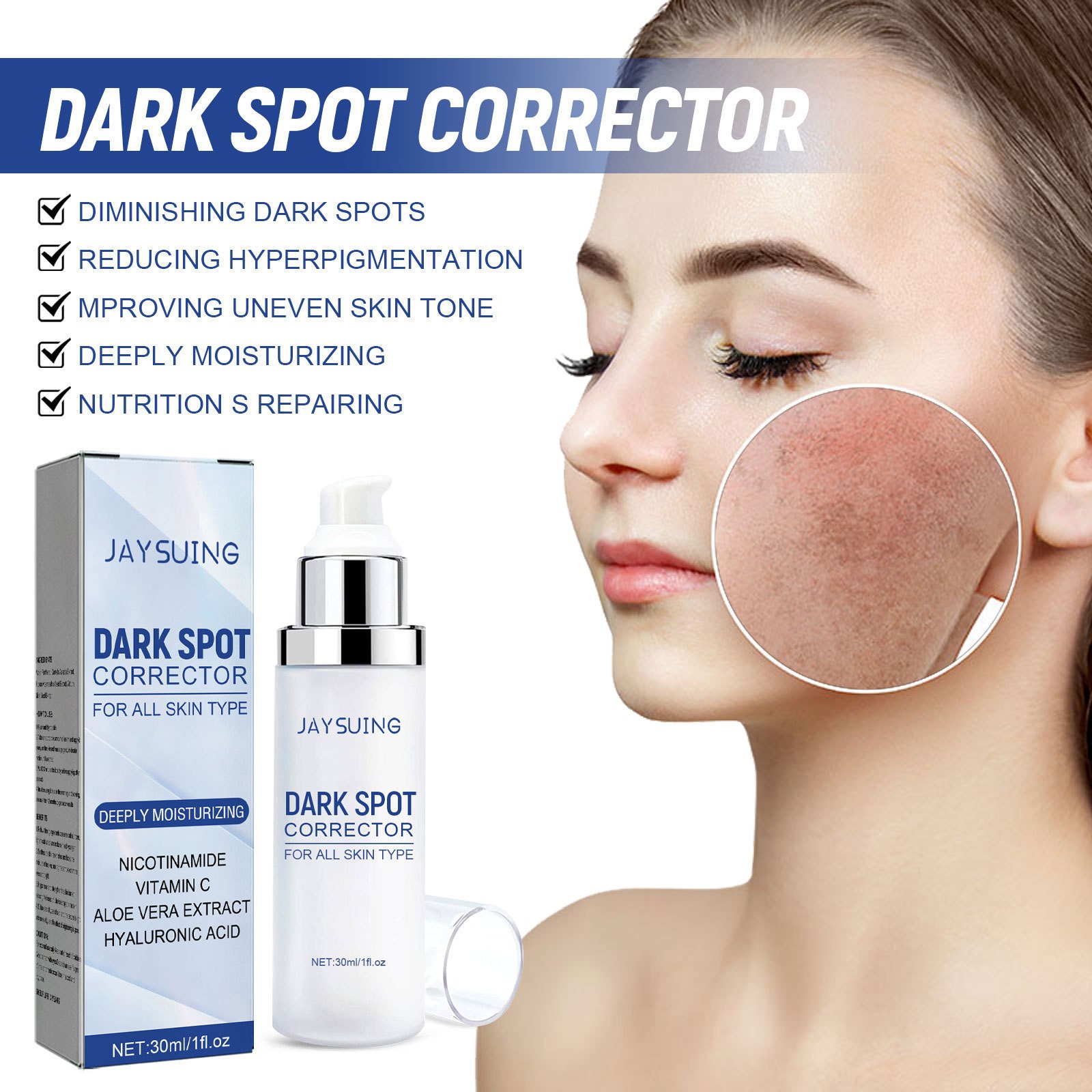 Product information: Net content: 30 Ingredients: Water, hyaluronic acid, vitamin C, nicotinamide, aloe extract, licorice extract
